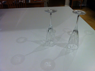 Lasit käännetään ylösalaisin ja pikaliimalla liimataan kuivuneet liinat kiinni laseihin.