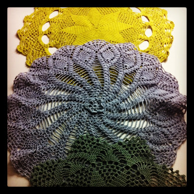 Kirpparilta löytyi aivan ihanan värisiä pitsiliinoja, 1€/kpl.