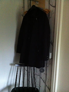 Heijastin-langasta on virkattu kaksi pyörylää. Väliin virkkasin mustalla jämälangalla pyörylän, johon vielä harsin heijastinpyörylöitä vähän kiinni, että pysyy paikoillaan.